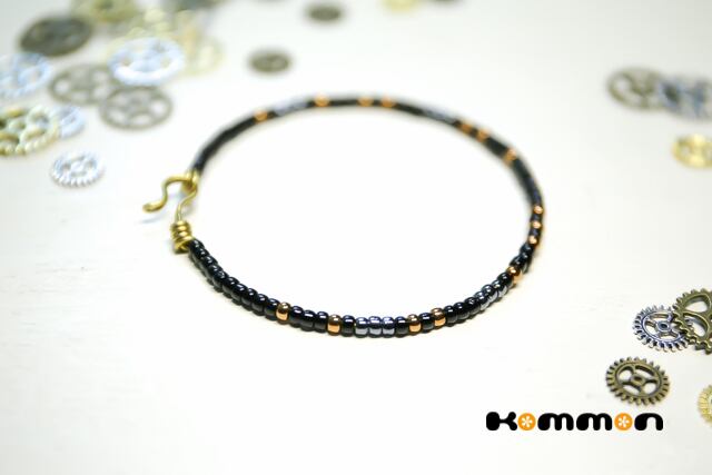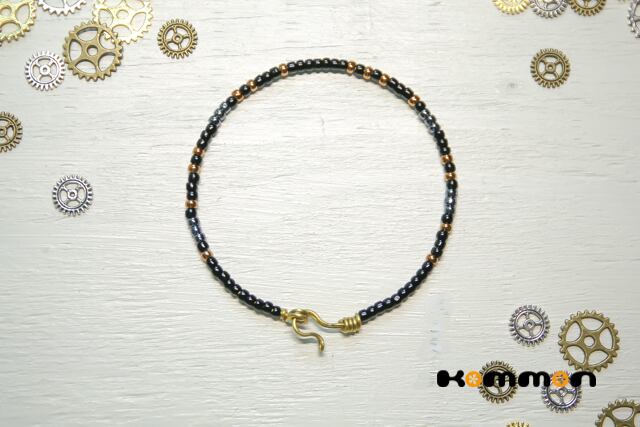 ブラックのビーズをベースに、渋く輝くゴールドとシルバー加工が施された日本製高級シードビーズを使用。