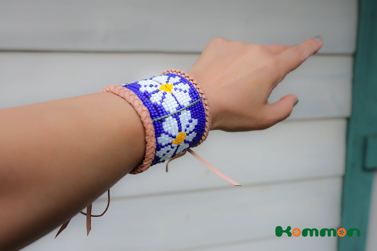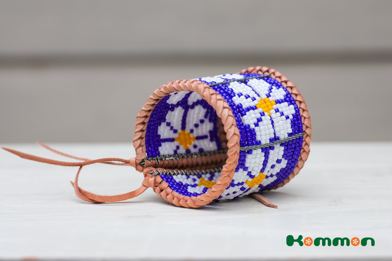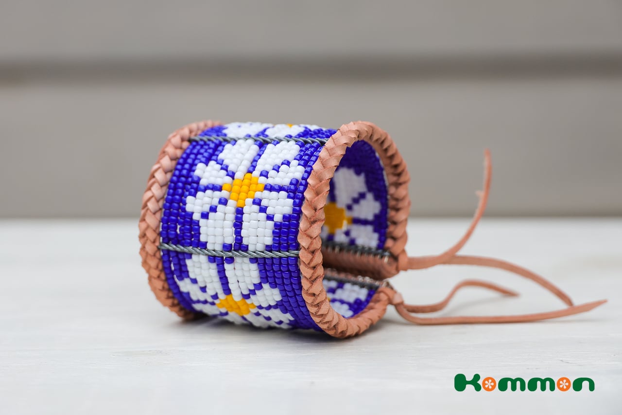 【革巻うでわ】「kommonest瑠璃とマルの里」の瑠璃色の黄昏に咲くマーガレットたち