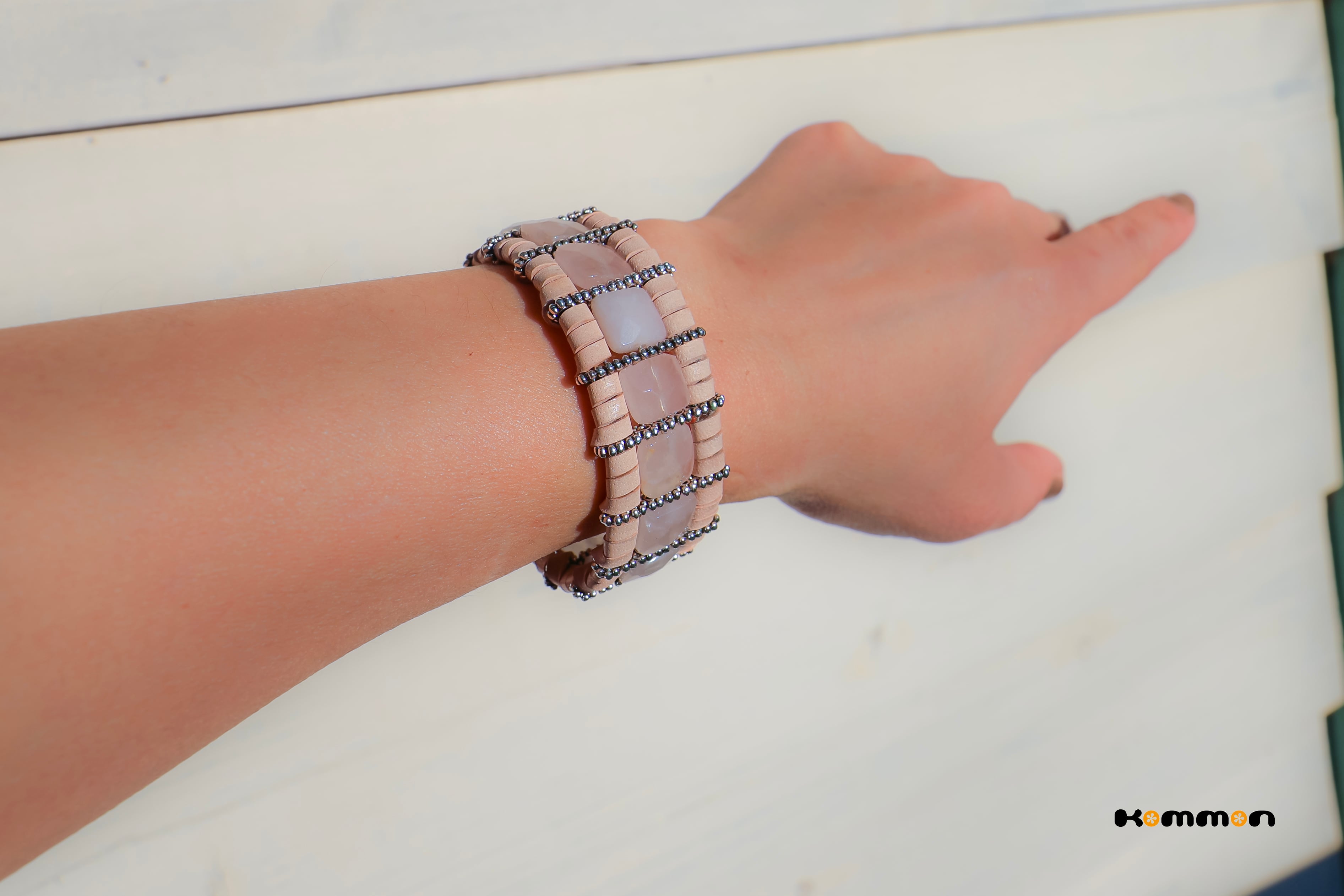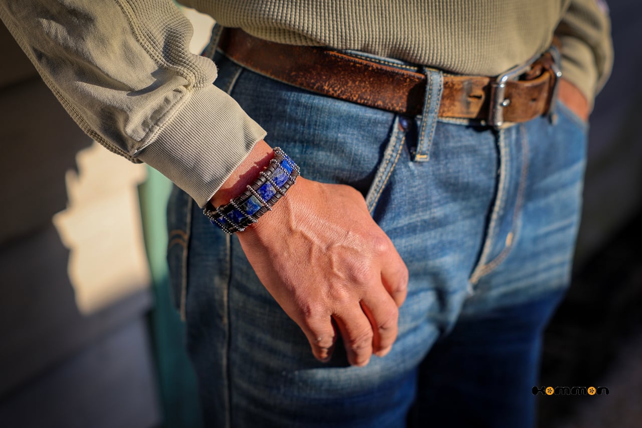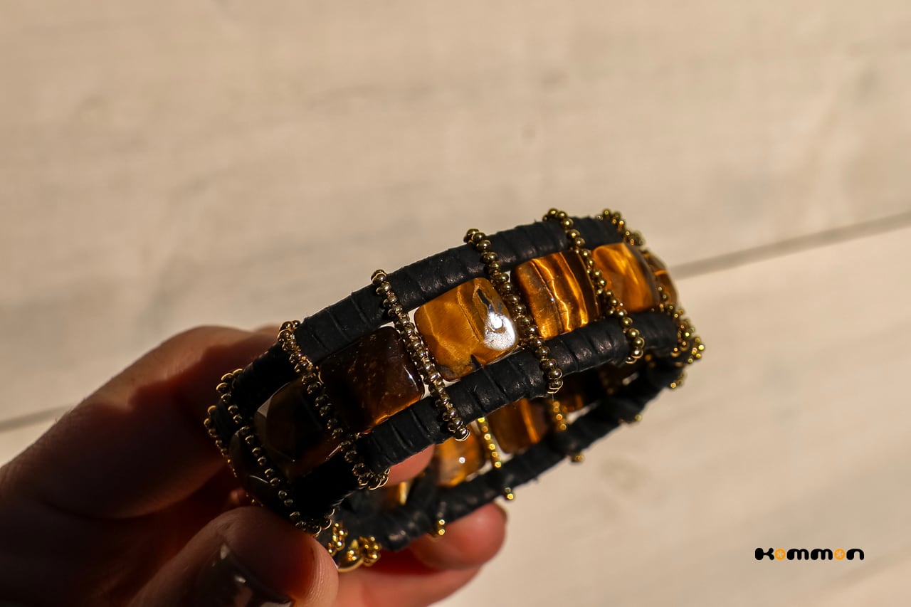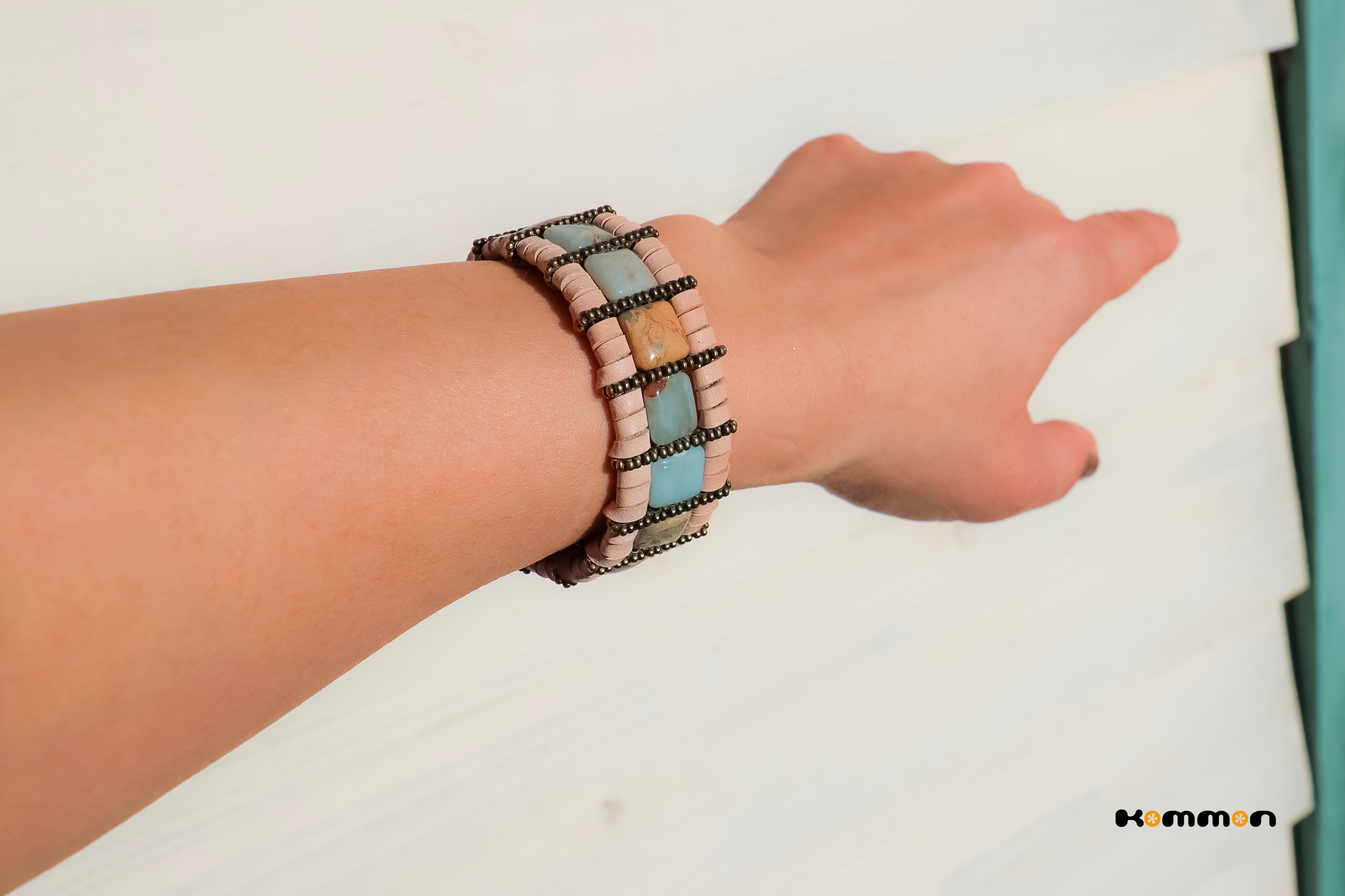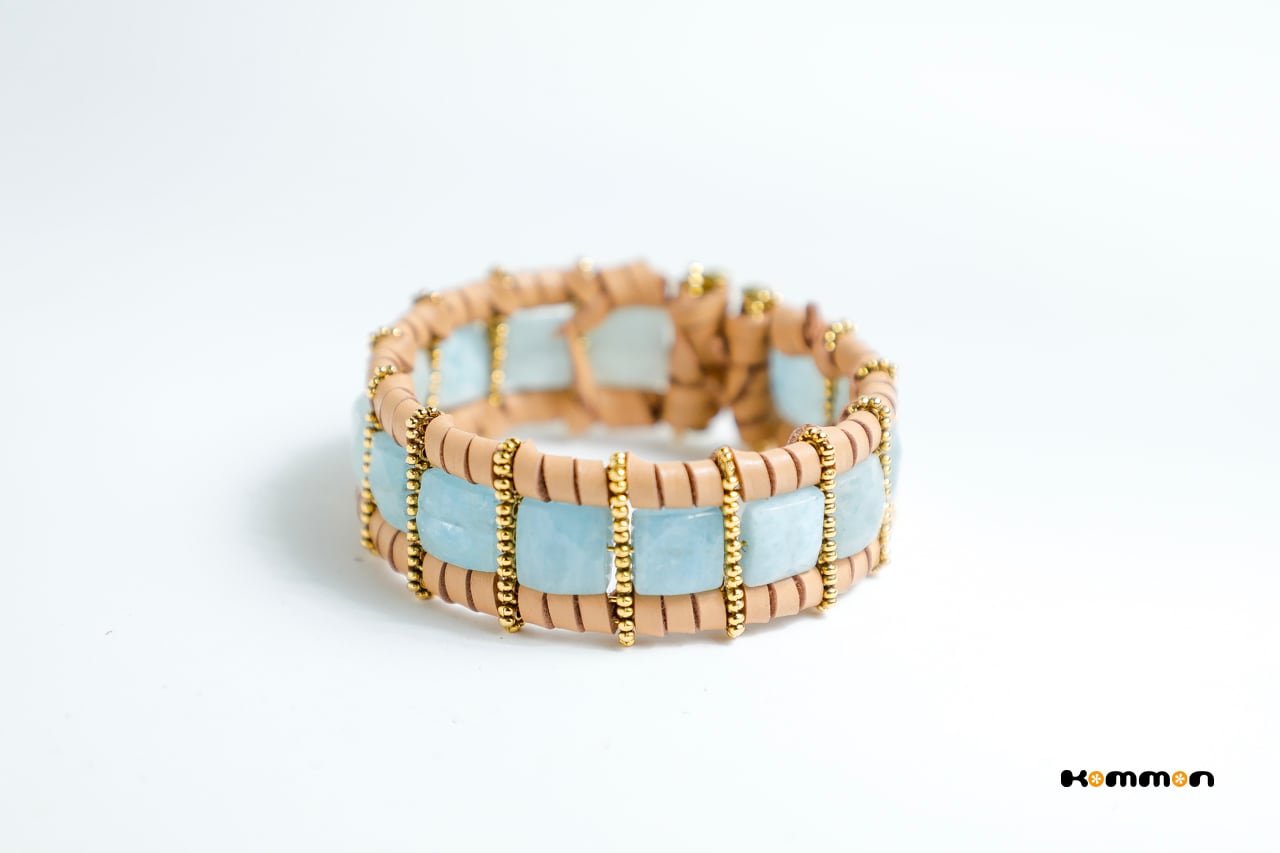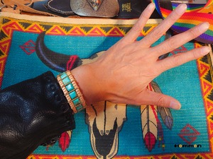 ・スクエア革巻うでわの天然石と同じ石、または似たお色の石を両翼に配置した細めのうでわです。