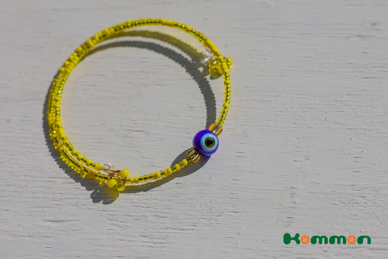 ナザールボンジュウうでわ【広島ビーズ(ビンテージ)イエロー】