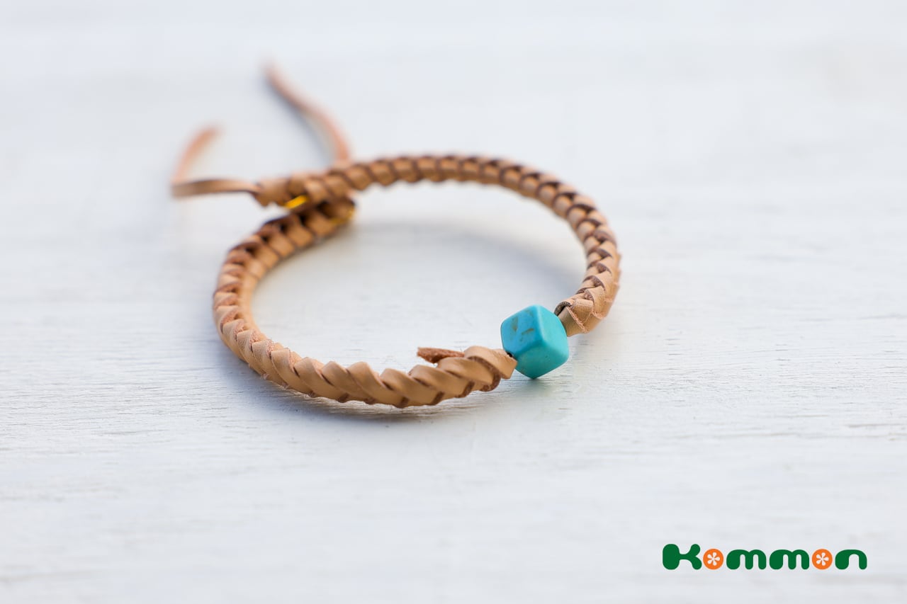 本革編みバングル【コモ&ステッチ】スクエアターコイズうでわ