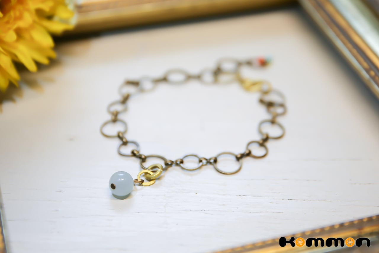 素材■アクアマリン(天然石)、国産グラスビーズ、国産真鍮ワイヤー、輸入デザインチェーン、