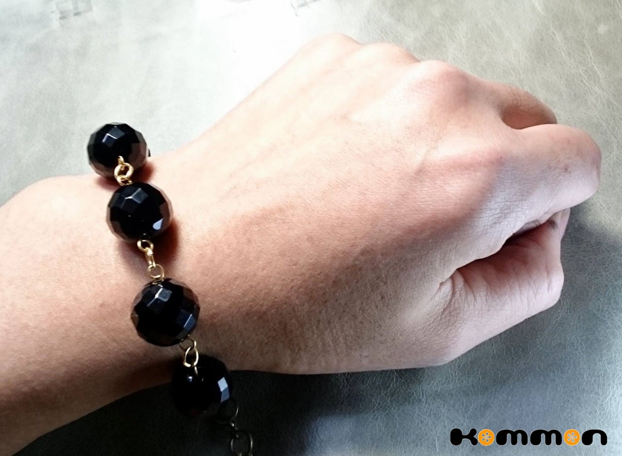 ボリューム感たっぷりの多面カットのオニキスをチェーンワークで繋いだブレスレットです。