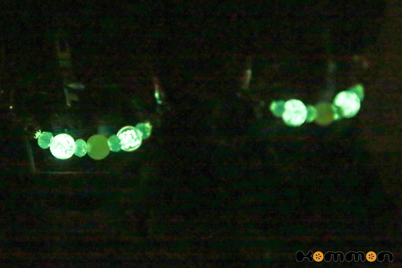もちろん、パーツの左右には、暗いところで光る蓄光ビーズ(※)を。