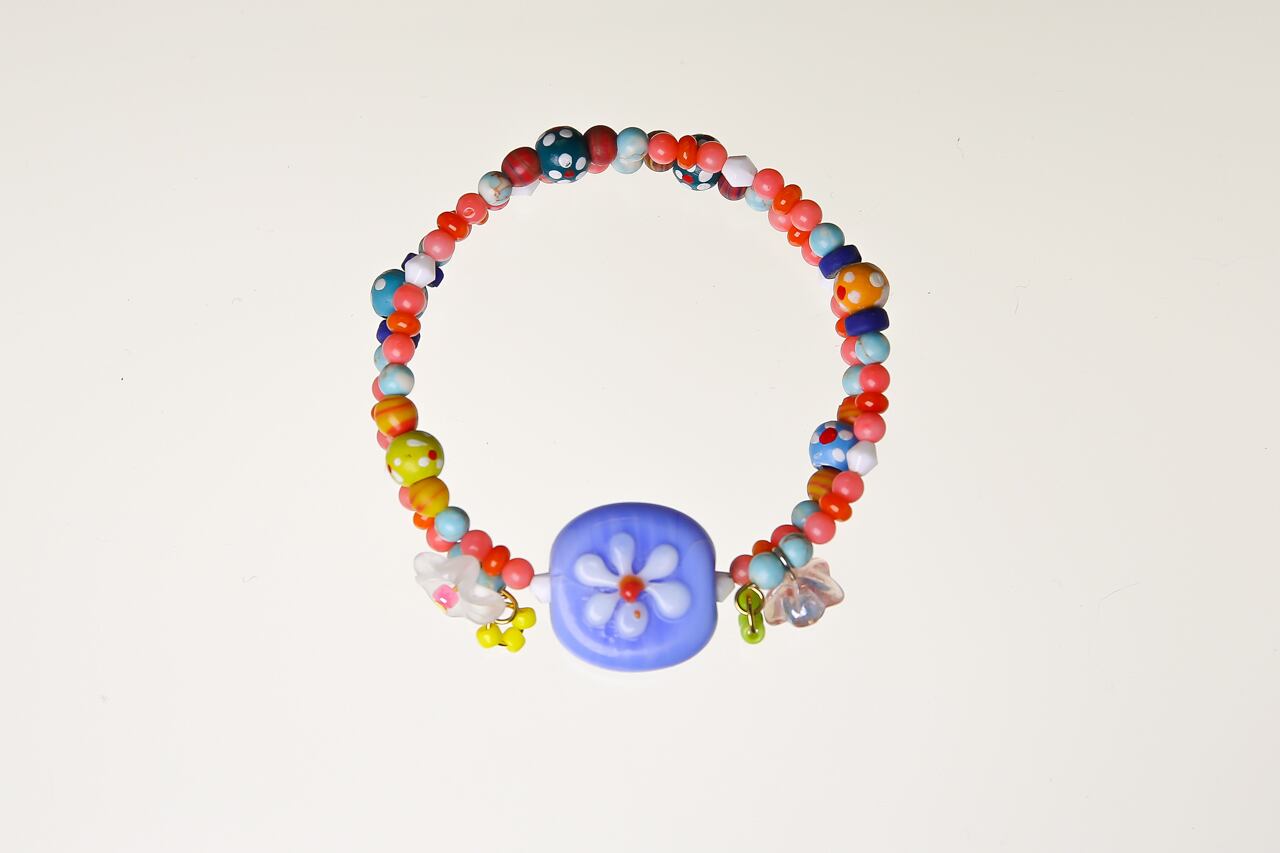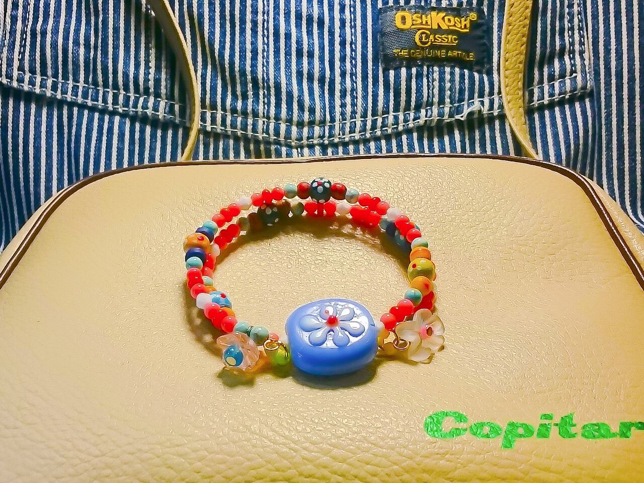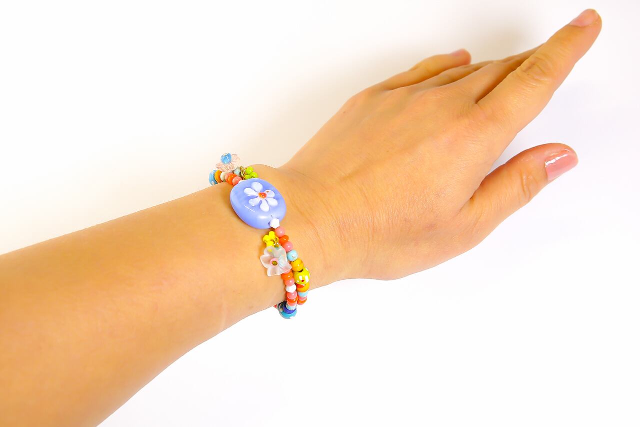 ブレスレットのエンド部分にはフラワーモチーフのチェコビーズをあしらいました。