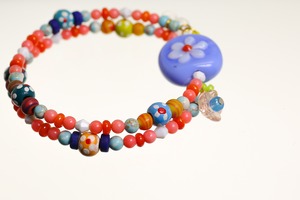 素材■輸入ビーズ、サンゴ(着色)、ターコイズ(練り)、アクリルビーズ、国産ガラスシードビーズ、チェコビーズ、ステンレスワイヤー