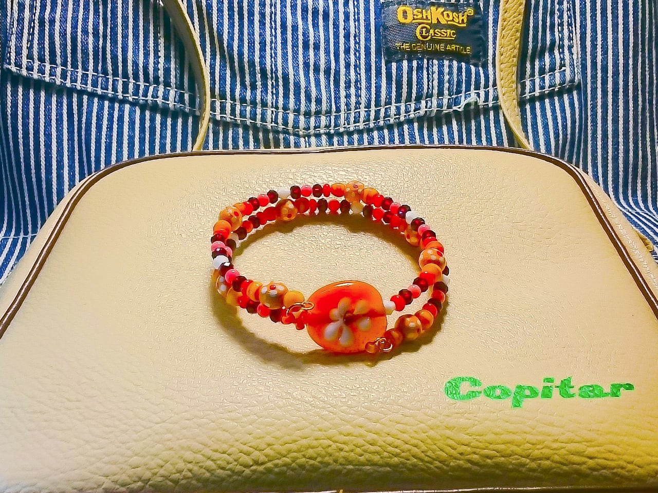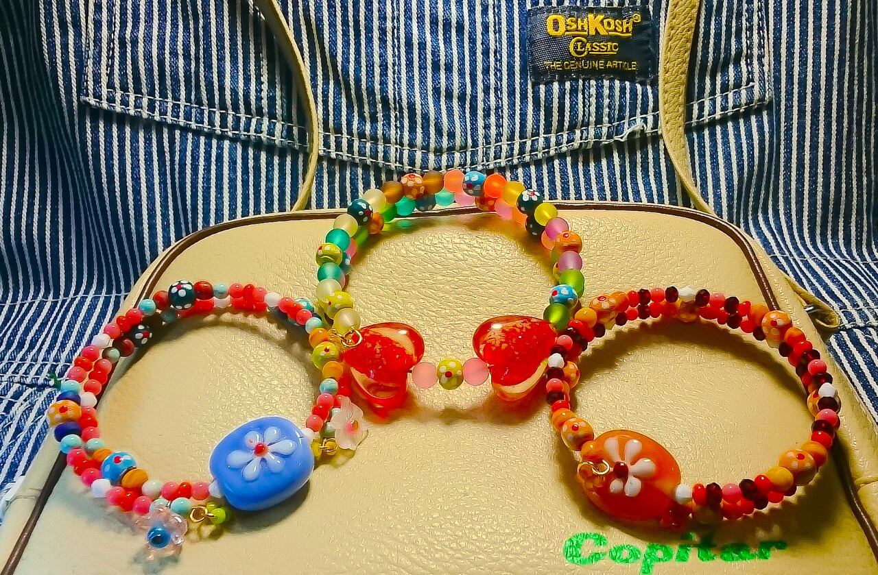などを組み合わせたカラフルなブレスレットです。