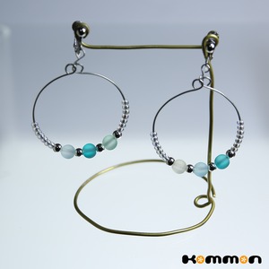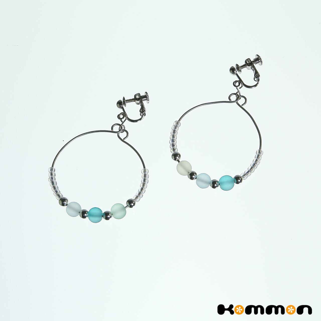 爽やかな水色系のつや消しガラス玉をフープタイプの耳飾りにデザインしました。