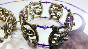 素材■アメジスト、ガラスシードビーズ、メタルビーズ、ワイヤー