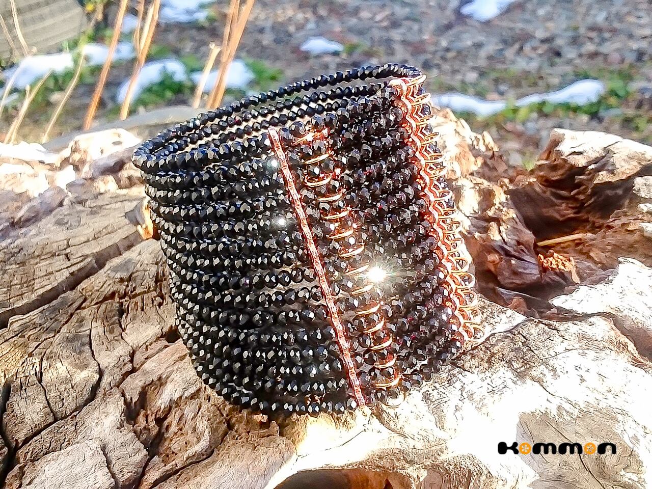 3mmのブラックカットガラスとメモリーワイヤーで制作したバングルです。