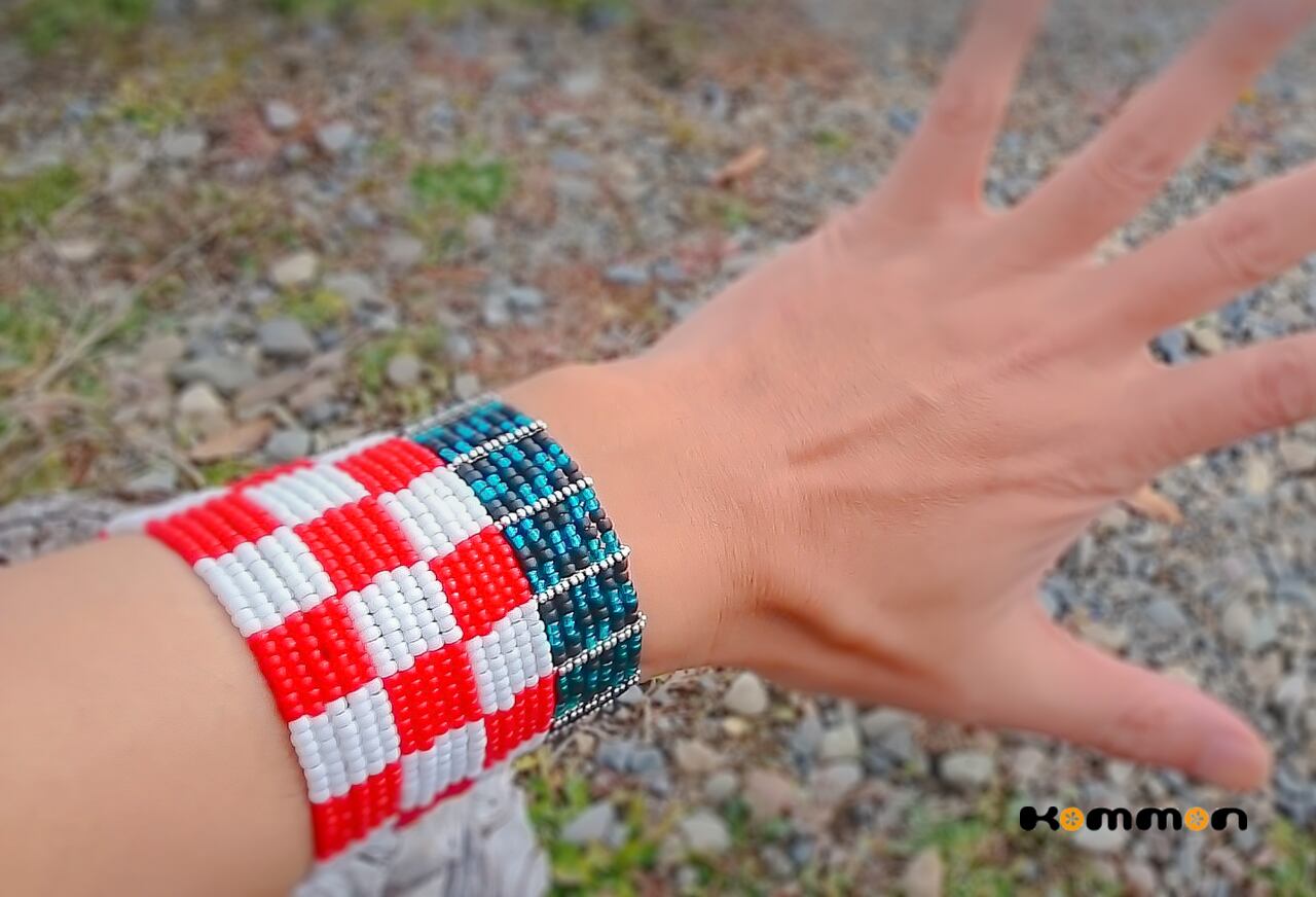 Kommonならではのワイヤーワークで作った極太うでわ、紅白市松模様のうでわが加わりました。