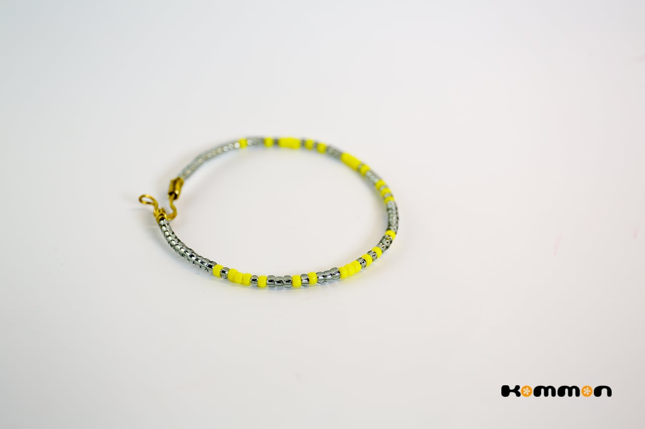 ヤマハのR6やR25に採用されているホワイトメタリック×イエローのイメージでシンプルにシルバーメタリック×黄色の2色のビーズで組み上げました。