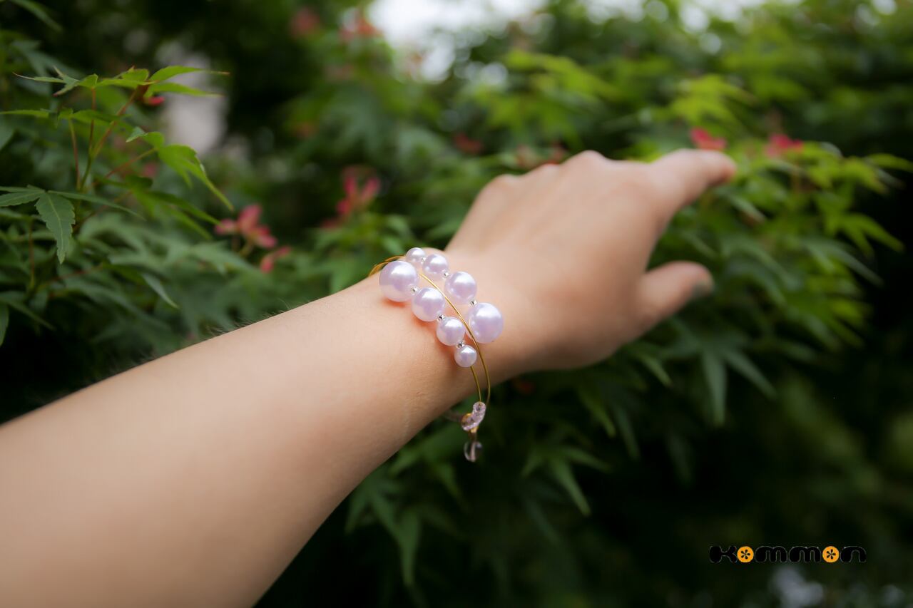 紫外線に反応してバイオレット色に変化するUVパールを使用したうでわです。