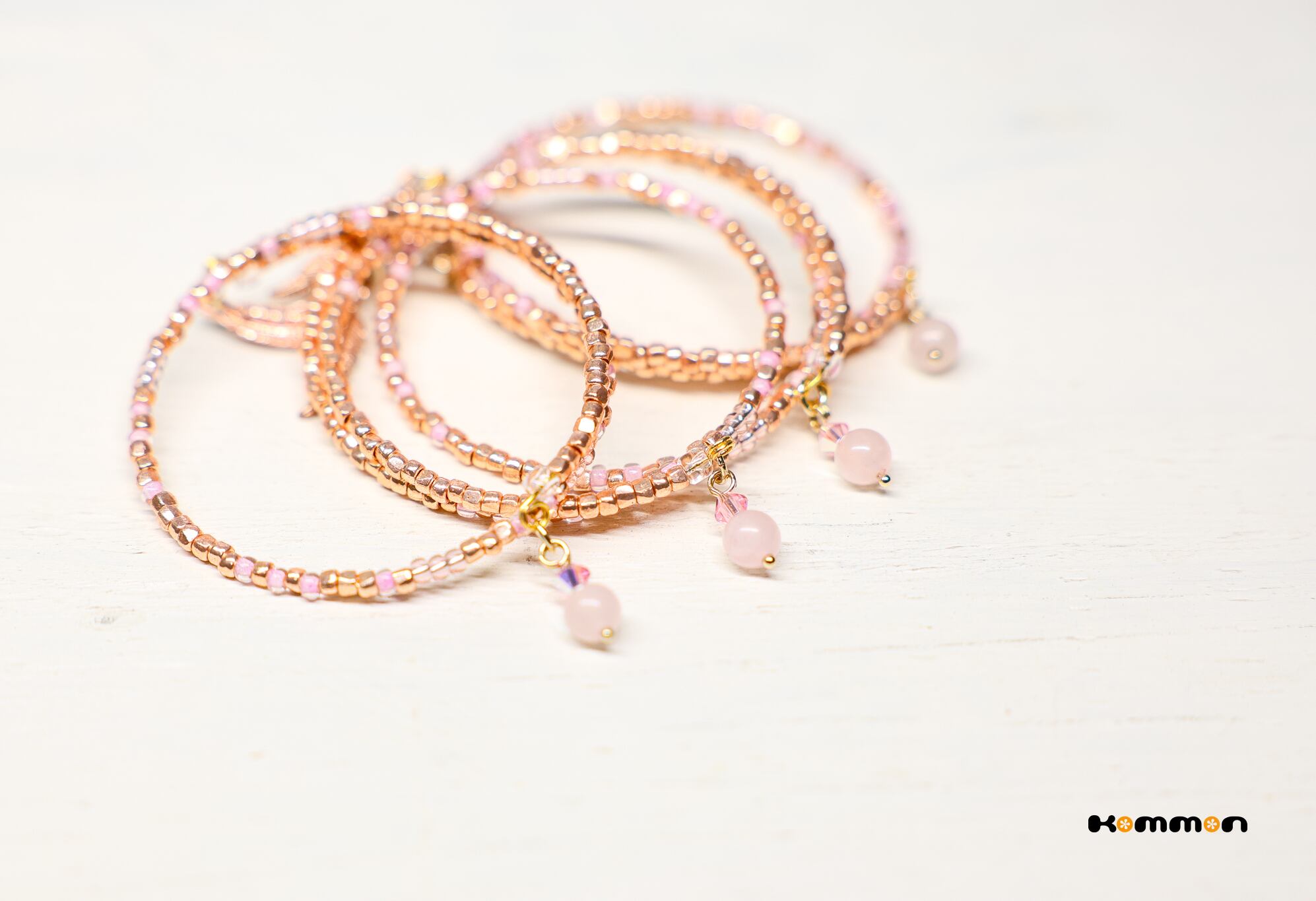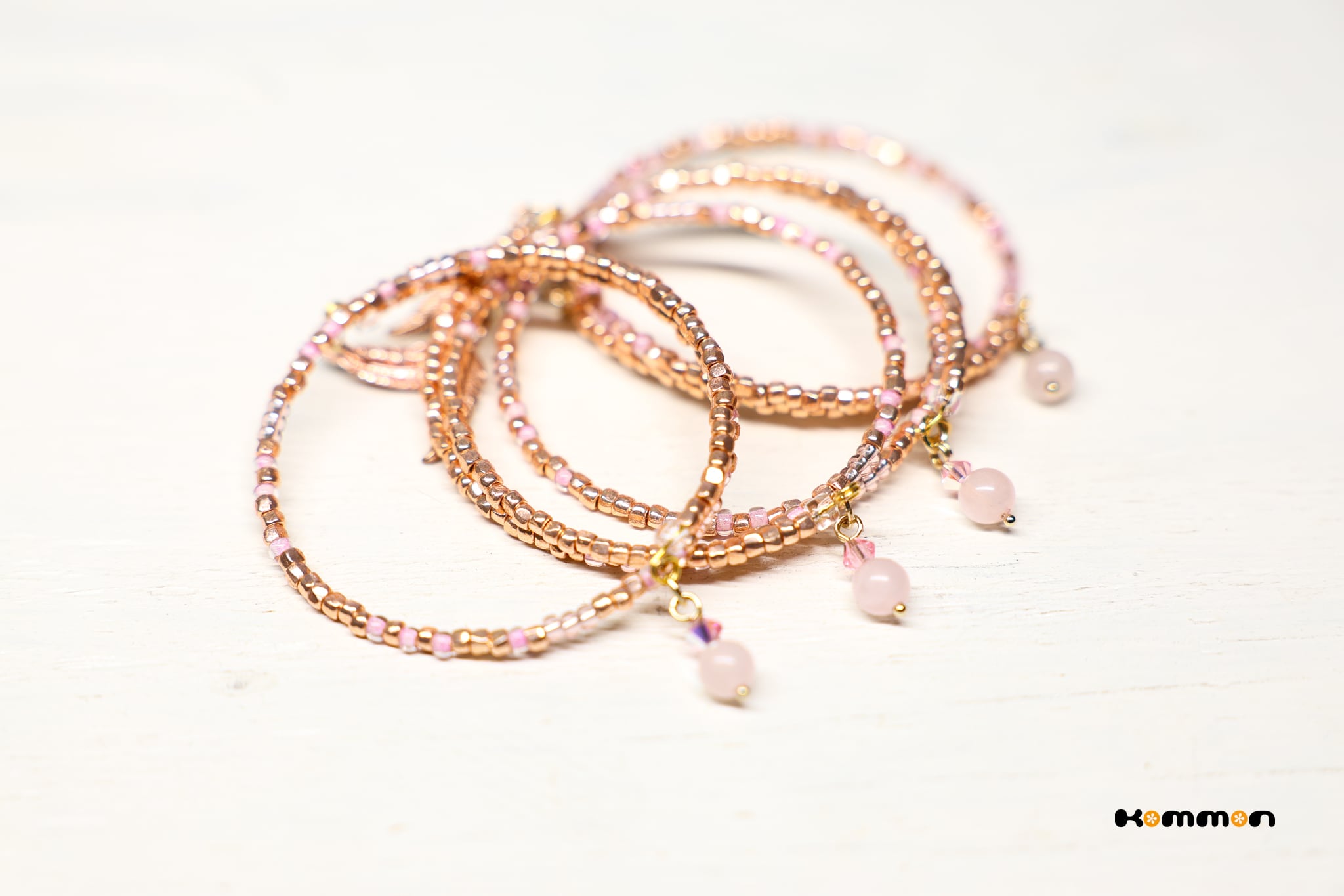 素材■国産ガラスビーズ、スワロフスキー、ローズクォーツ、メモリーワイヤー