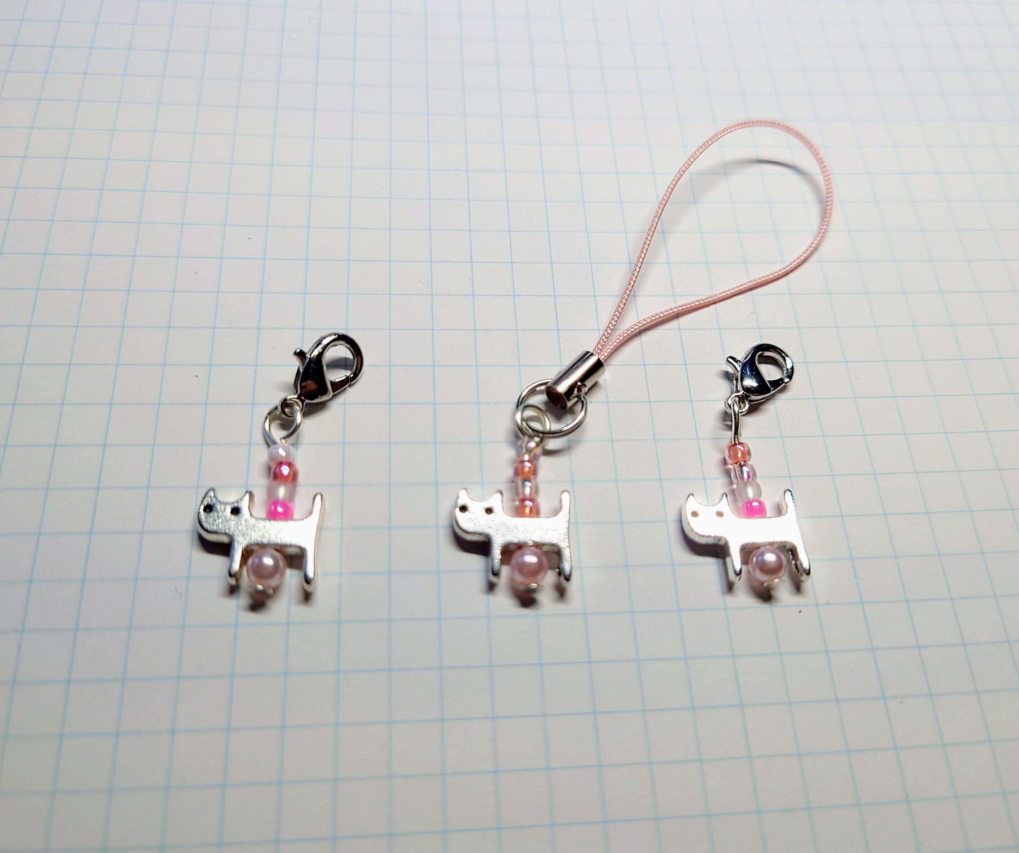 Kommon猫のチャームまたはストラップ、2個セットです。