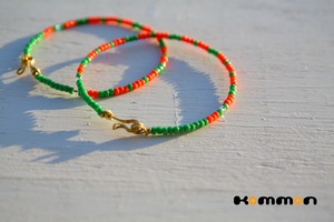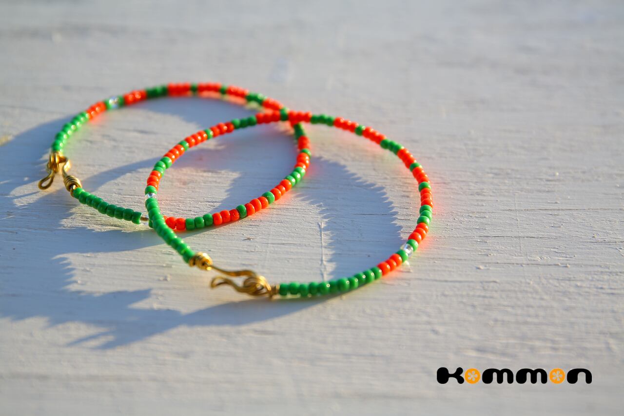 モールス信号の配列で“KOMMON”と組んであるビーズのブレスレットです。