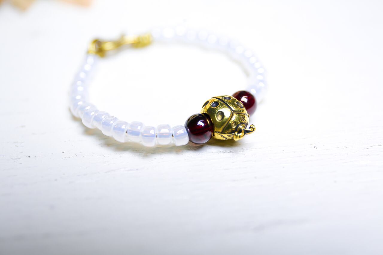 てんとう虫の両側には、天然石のガーネットを配置しました。