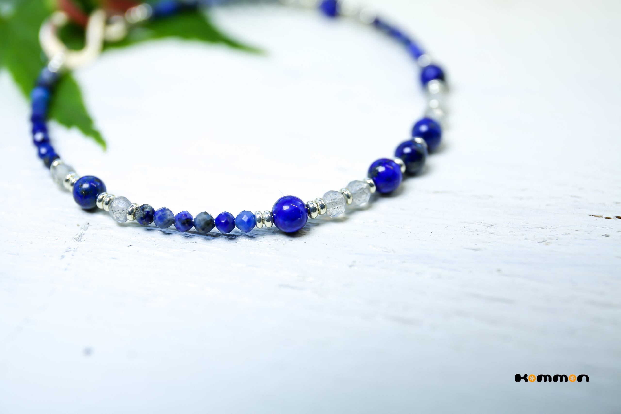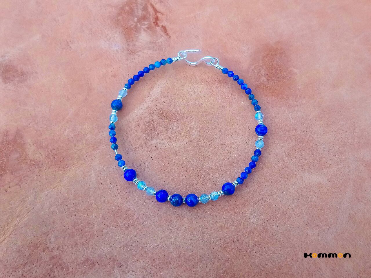 ラピスラズリ(4mm&2mmのcut加工)と、ラブラドライト(3mmカット加工)を組み合わせてデザインしました。