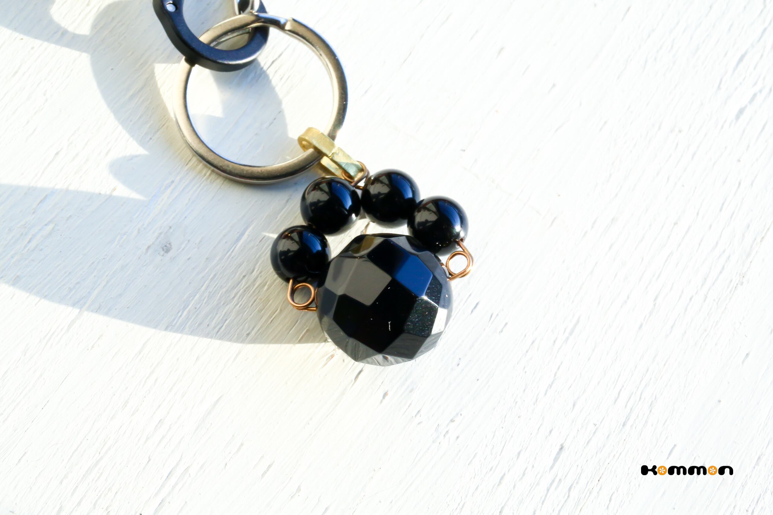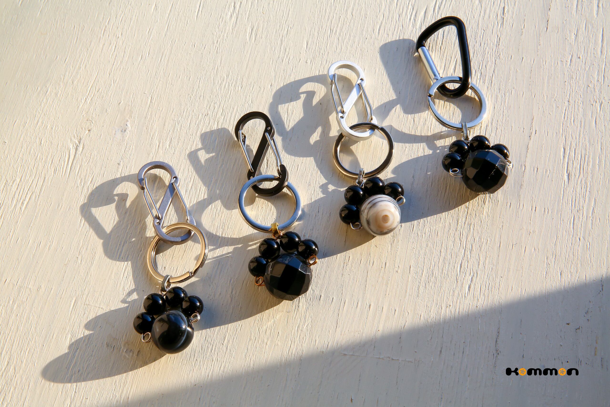 大きなカットオニキス石と、約10mmの丸いオニキス4つで、猫ちゃんの肉球を表現したチャームです。