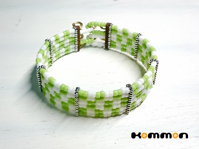 【チェッカーフラッグうでわ】〈白黒/白・黄緑〉