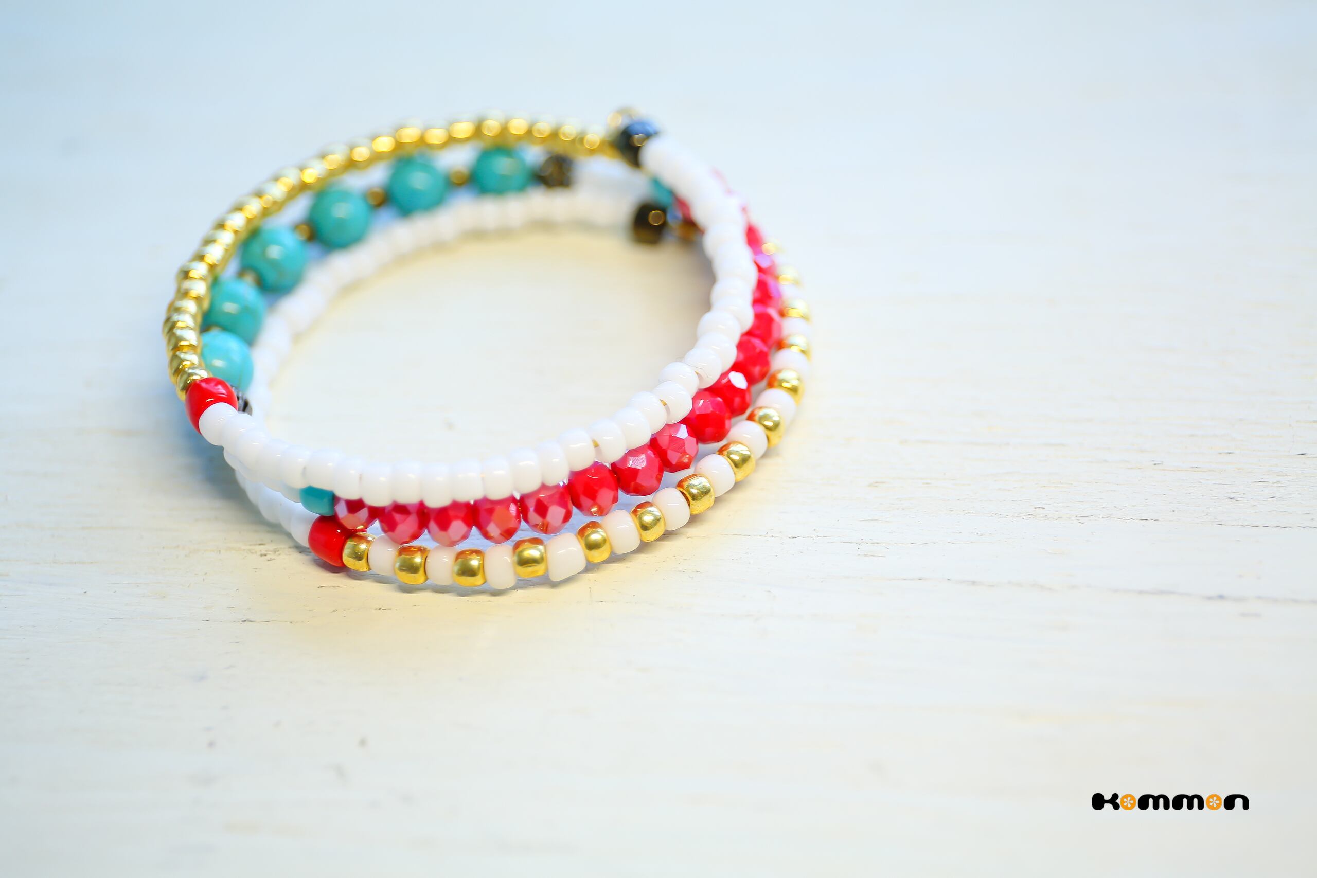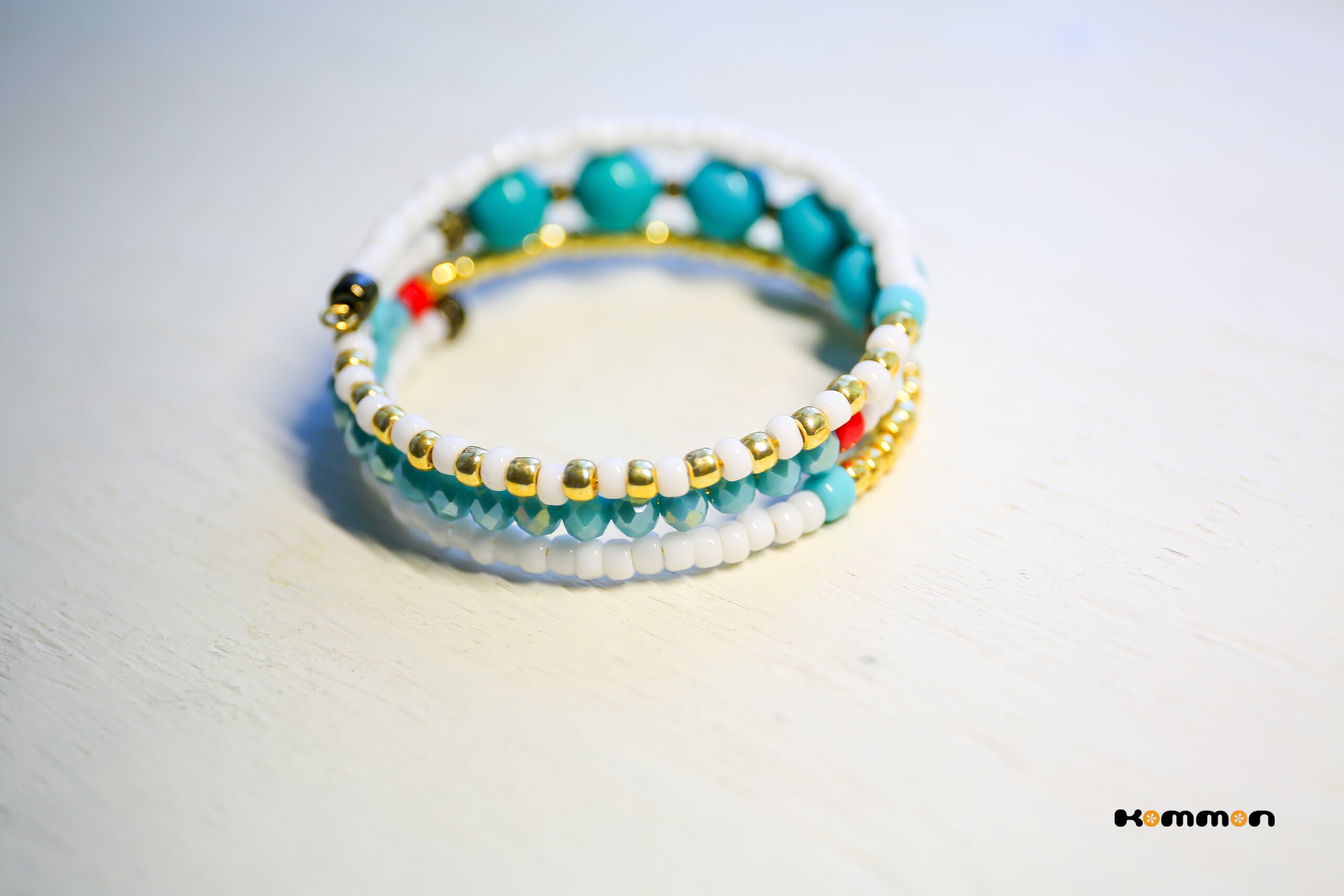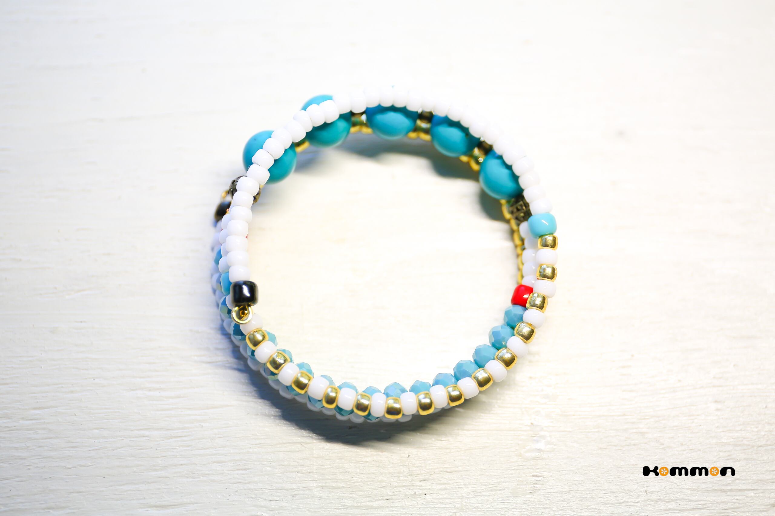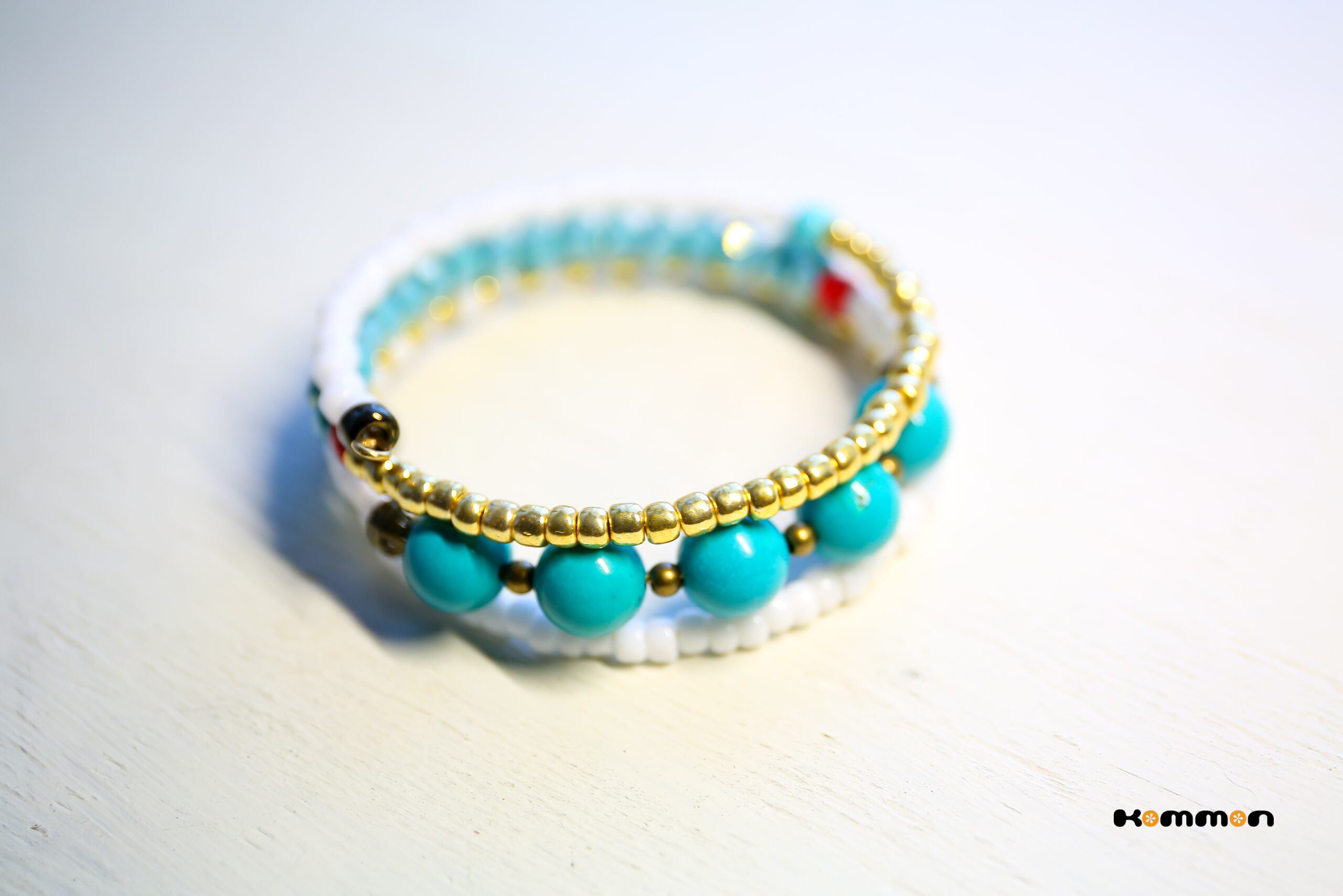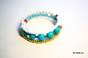 素材■ターコイズ(練り・着色)、国産高級ガラスシードビーズ、輸入カットビーズ、メタルビーズ、メモリーワイヤー
