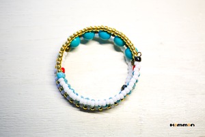 カット加工のビーズや、メタルビーズをアシメトリーに配置しているので、うでわの向きによって表情が変わります。