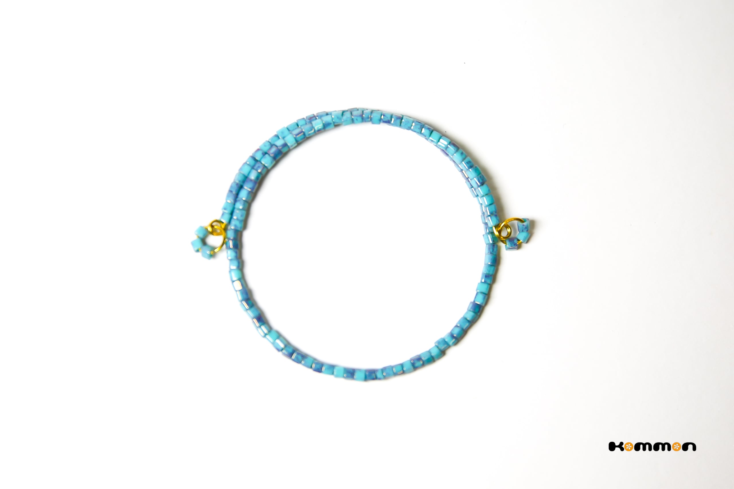 こちらは、ターコイズブルー系にマーブルカラー加工を施したアンティークなニュアンスのガラスビーズを選びました。