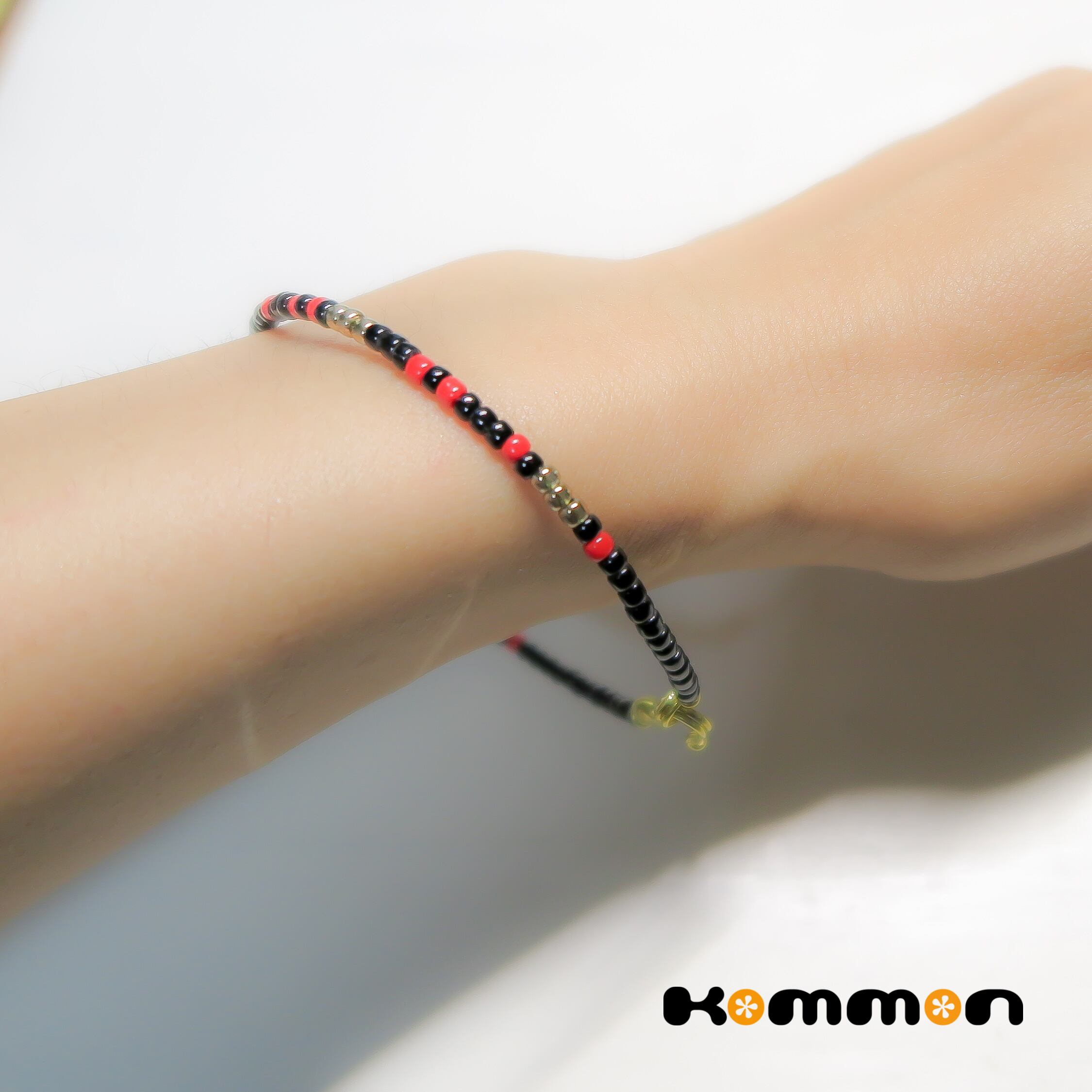 したがって、糸やテグスのブレスレットよりやや大きめサイズとなっておりますが、外れにくく軽い装着感となっております。