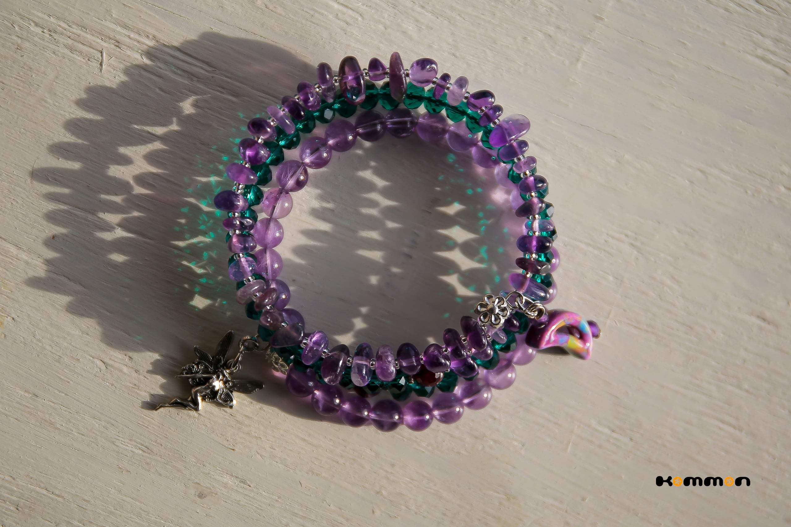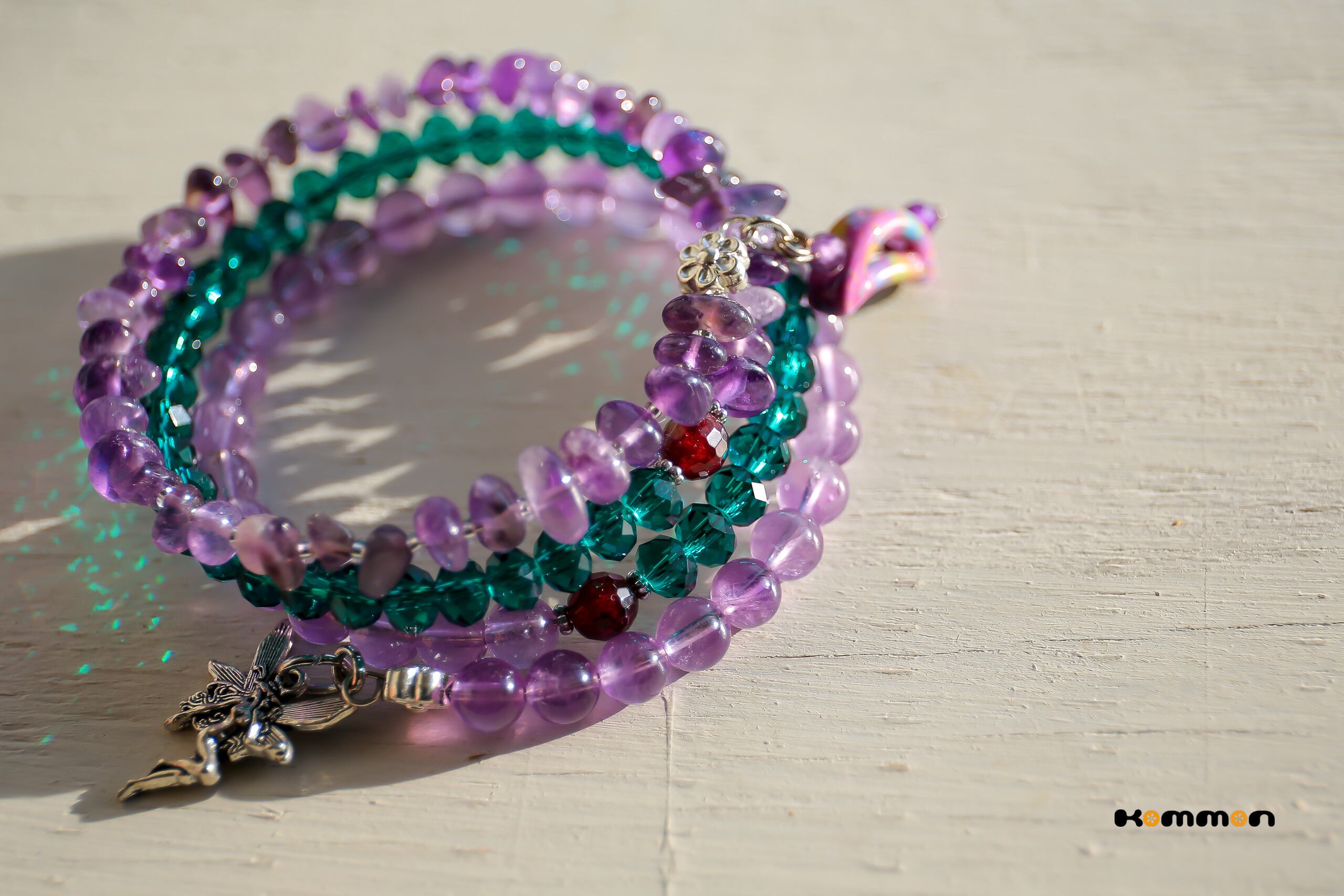 素材■アメジスト(天然石)、ガーネット(天然石)、カットガラスビーズ(輸入)、国産高級ガラスシードビーズ、メタルビーズ、メモリーワイヤー