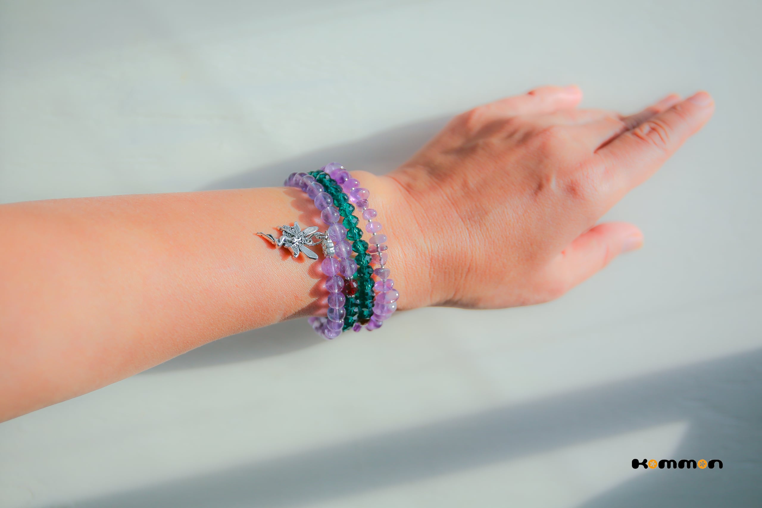 ブレスレットのエンド部分には、ゆらゆらと揺れて手元を彩るチャームを取り付けました。