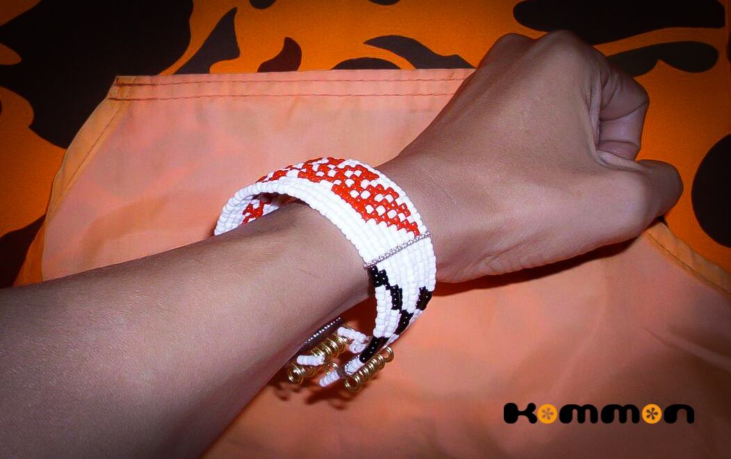 Kommonのうでわはワイヤーワークの技法を使っておりますので、糸やテグスと違いくたっとすることなく形が保たれ、イラストや模様を表現することが可能です。