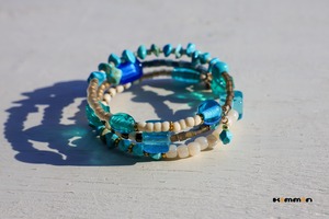 【一点限り】ヴェネツィアンビーズのスパイラルうでわ(ブルー)